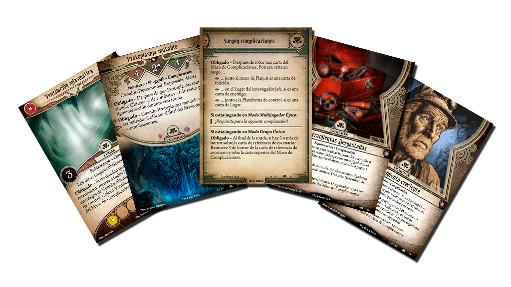 El mazo de complicaciones simboliza diferentes peligros que acechan al titan industrial o a los propios investigadores. Desde problemas con las herramientas hasta lugares inexplorados pasando por monstruosos invitados no deseados.